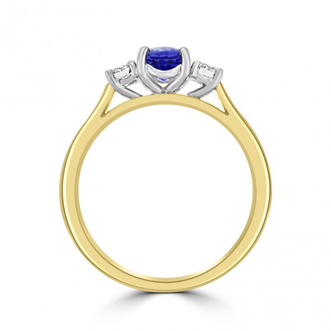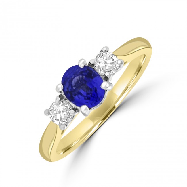 18ct Gold 3-stone .85ct Sapphire & Diamond Ring