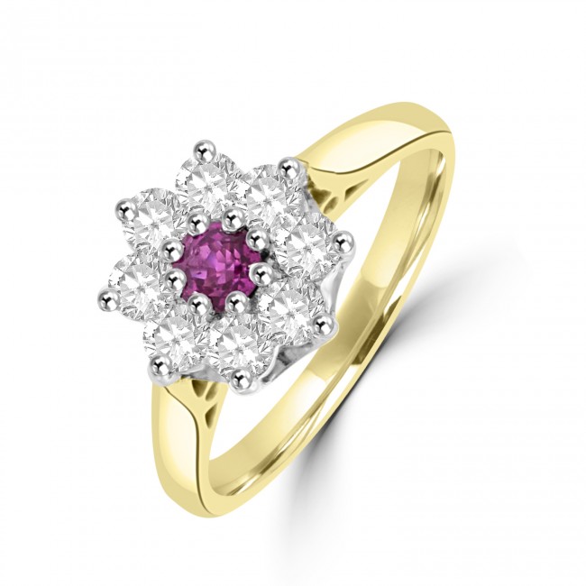 18ct Gold Ruby and Diamond Daisy Cluster Ring