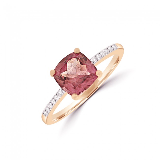 • 18ct Rose Gold Pink Tourmaline Solitaire Ring with Diamond