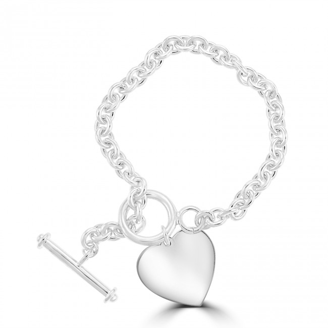 This easy to wear Bracelet is made up of solid sterling silver links, finsihed with a T-Bar clasp and heavy heart Charm.