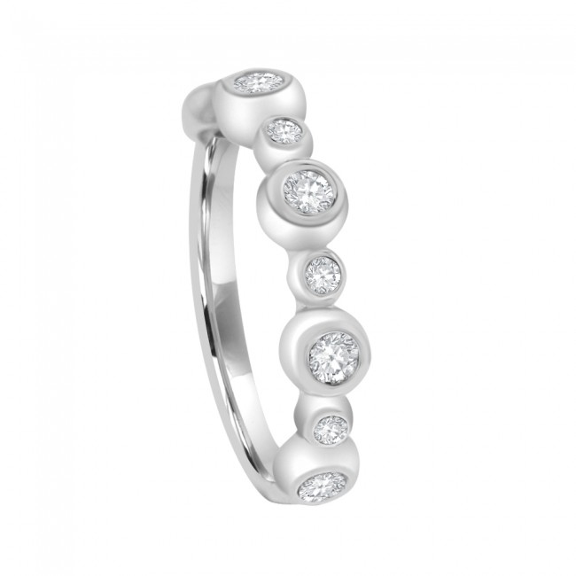 An impressively, thick set Bubble ring featuring two sizes of brilliant cut white stones alternated in silky smooth, rubover settings.