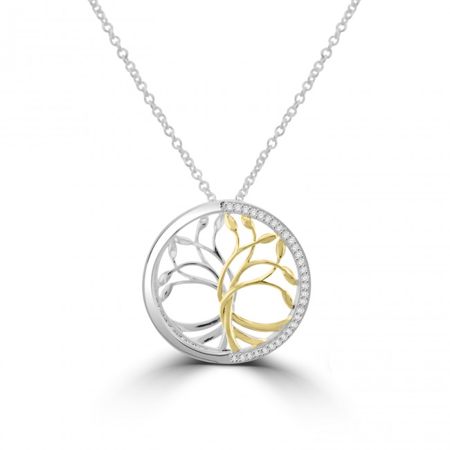 Sterling silver Two Tone 3D Tree of Life Pendant Chain
