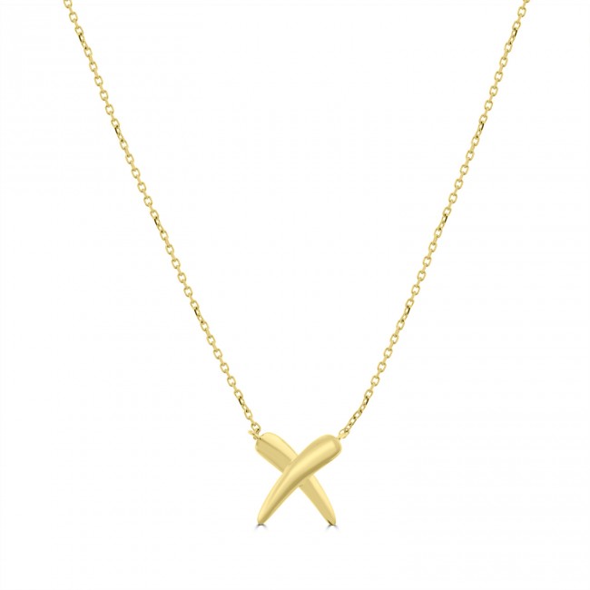 Two rounded bars cross over to form an attractive pendant. Fixed within a 17" belcher chain and radiating warm tones of 9ct yellow gold.