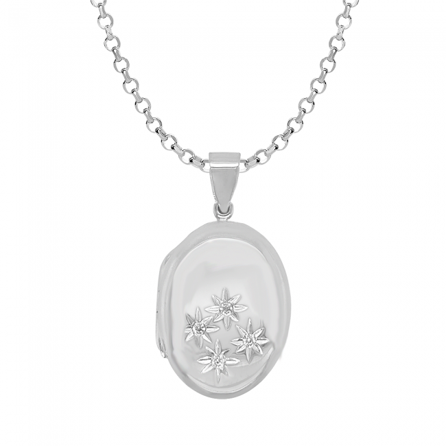 • Sterling silver Oval 4-star set Pendant Locket chain