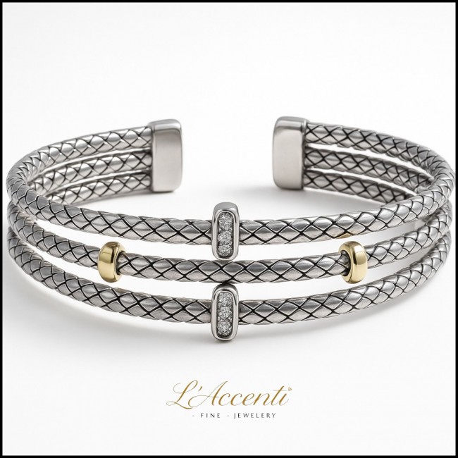 • Sterling silver 18ct Gold Diamond Triple Strand Cuff Bangle