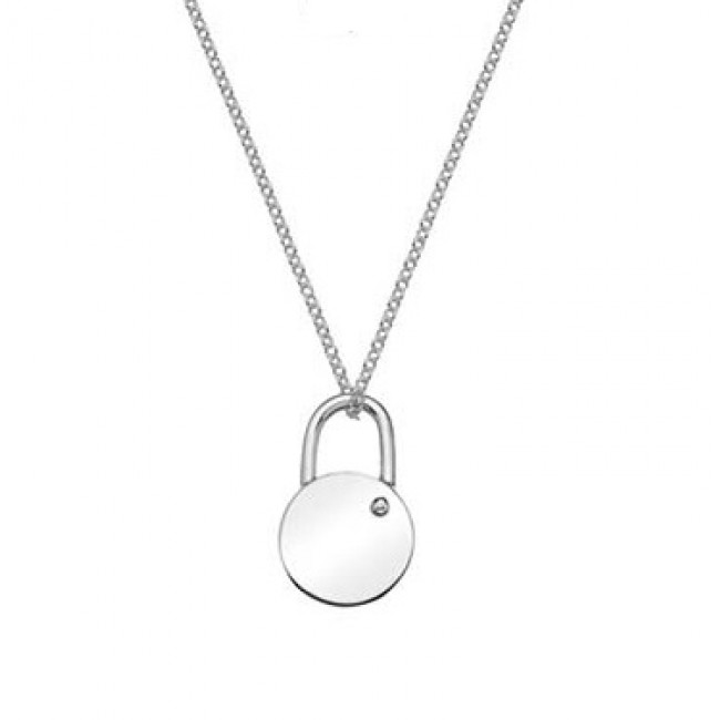 A solid padlock pendant is fitted to an 18" trace chain with shortening ring at 16" length.