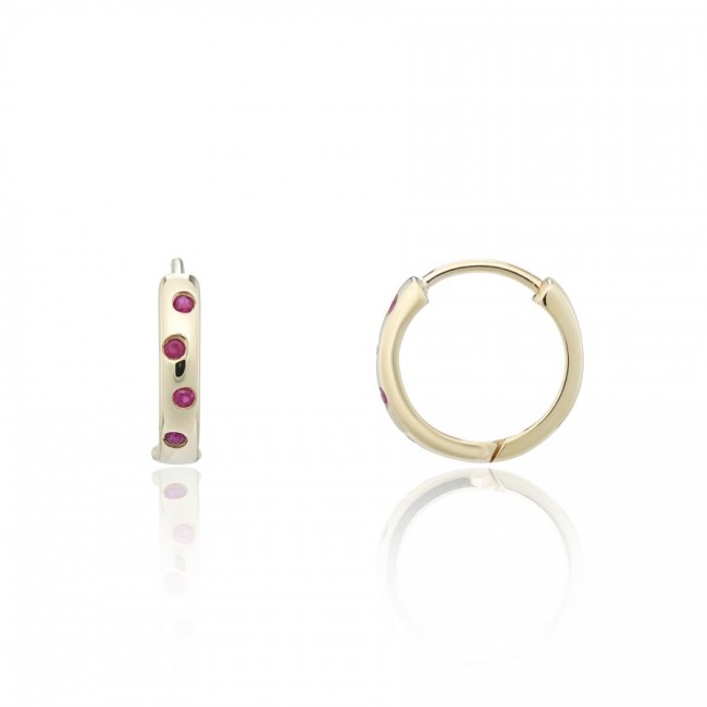 • 9ct Gold Staggerset Ruby Huggy Hoop earrings