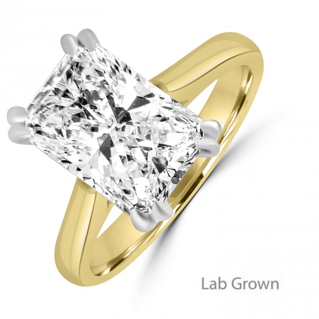18ct Gold Platinum Radiant Lab Grown Diamond Solitaire ring