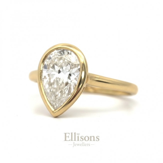 18ct Gold Pear cut Diamond Bezel set Solitaire ring